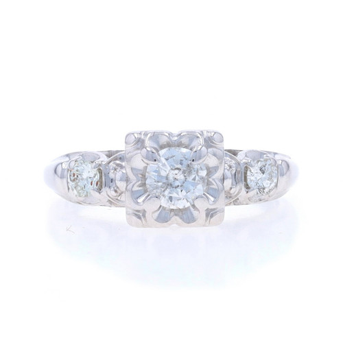 White Gold Diamond Vintage Engagement Ring - 14k Round .49ctw Floral