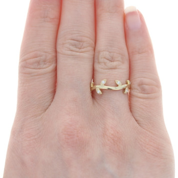 White Gold Diamond Vintage Ring -14k Round .62ctw Floral Leaf Botanical Milgrain