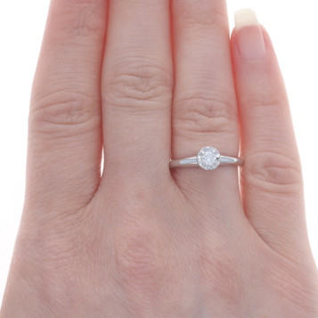White Gold Diamond Vintage Solitaire Engagement Ring -14k Round Brilliant Floral