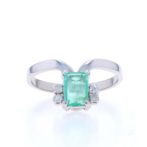 White Gold Emerald & Diamond Ring - 18k Emerald Cut .51ctw