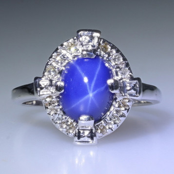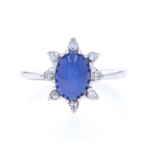 White Gold Lab-Created Star Sapphire Diamond Halo Ring 14k Oval Cabochon 1.76ctw