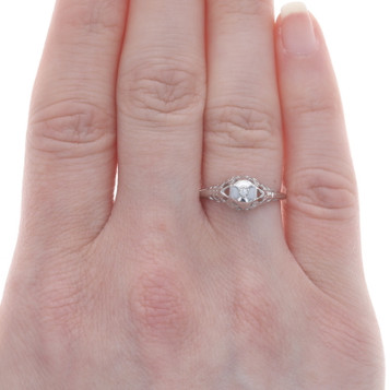 White Gold Onyx Art Deco Cocktail Solitaire Ring - 18k Vintage Filigree Milgrain