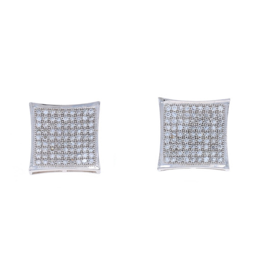 White Gold Pave Diamond Lg Cluster Stud Earrings 10k Single Cut 1.00ctw Square