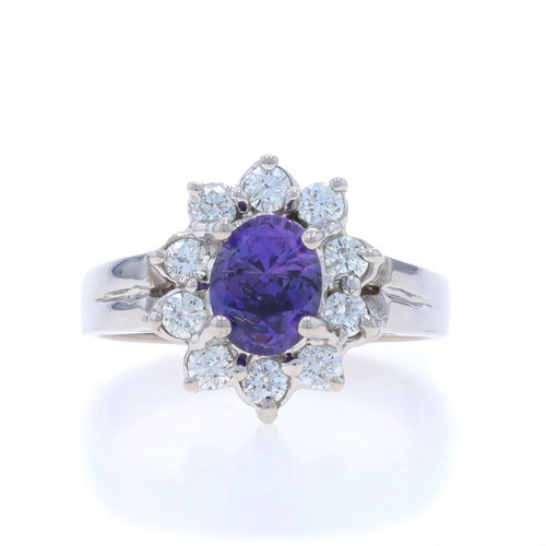 White Gold Purple Sapphire Diamond Halo Ring - 14k Oval 2.09ctw Flower Cathedral