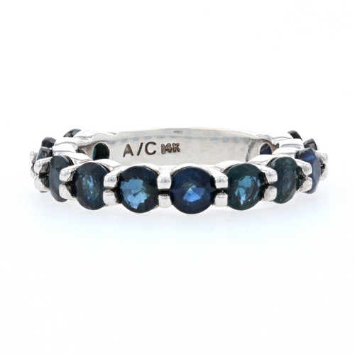 White Gold Round Brilliant Sapphire Band - 14k 4.05ctw Wedding Anniversary Ring