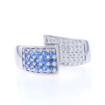 White Gold Sapphire Diamond Cluster Cocktail Bypass Band 14k .93ctw Ring Sz8 1/2
