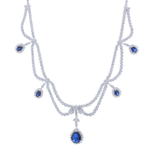 White Gold Sapphire Diamond Halo Dangle Necklace 15 3/4" - 18k Pear 7.25ctw