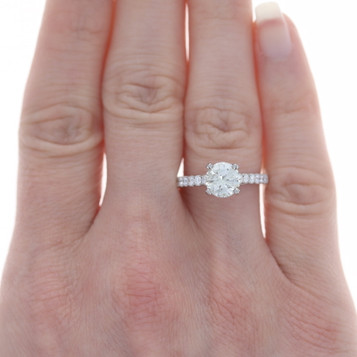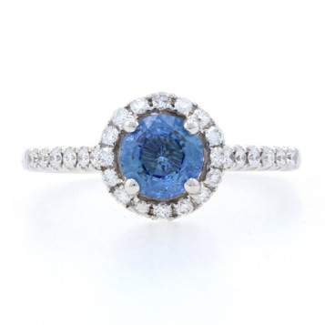 White Gold Sapphire & Diamond Halo Engagement Ring -14k Round 1.42ctw Euro Shank