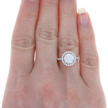 White Gold Sapphire Diamond Halo Ring - 18k 18k Oval 1.74ctw