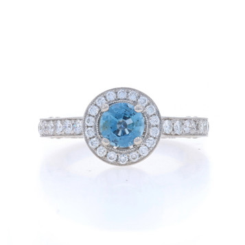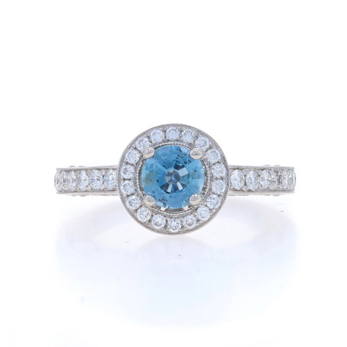 White Gold Sapphire & Diamond Halo Ring - 18k Round 1.53ctw Milgrain Engagement
