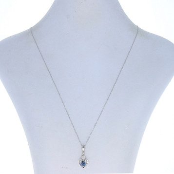 White Gold Sapphire & Diamond Pendant Necklace 18" - 18k Pear .49ctw
