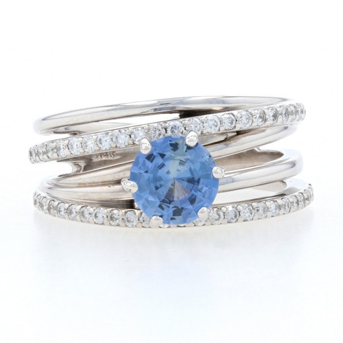 White Gold Sapphire & Diamond Ring - 14k Round Cut 1.49ctw