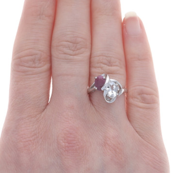 White Gold Sapphire & Diamond Vintage Two-Stone Bypass Ring - 14k Round 1.22ctw