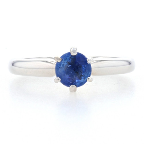 White Gold Sapphire Solitaire Engagement Ring - 14k Round Cut .60ct