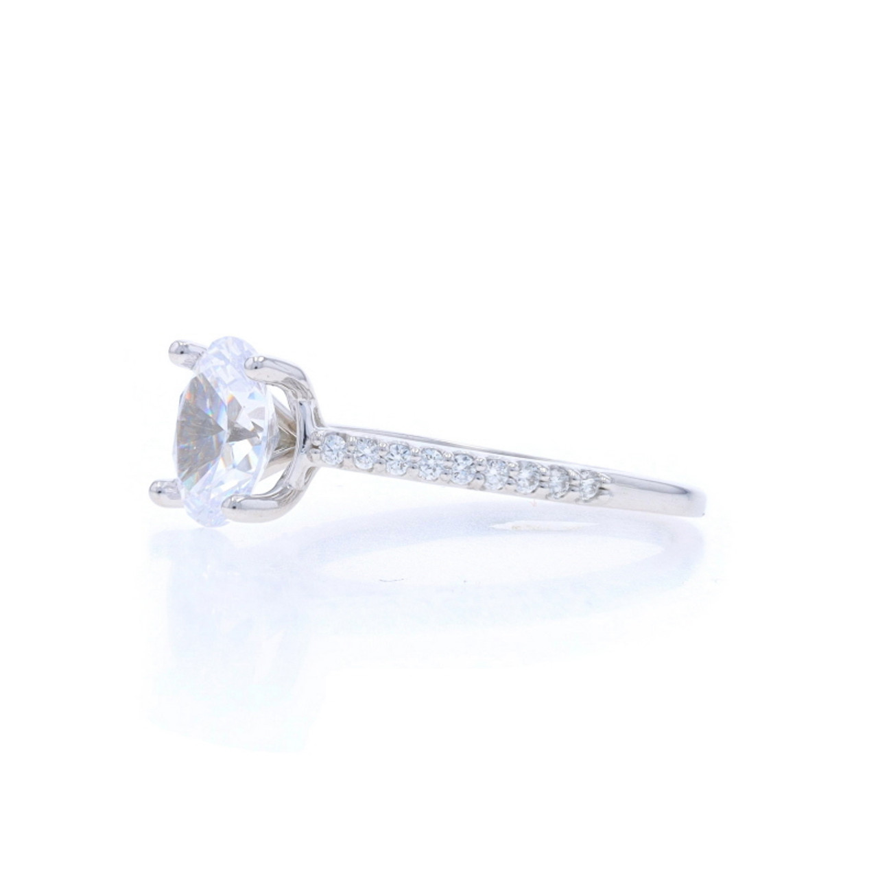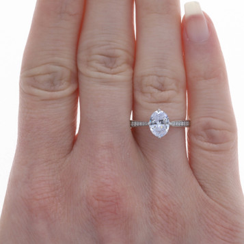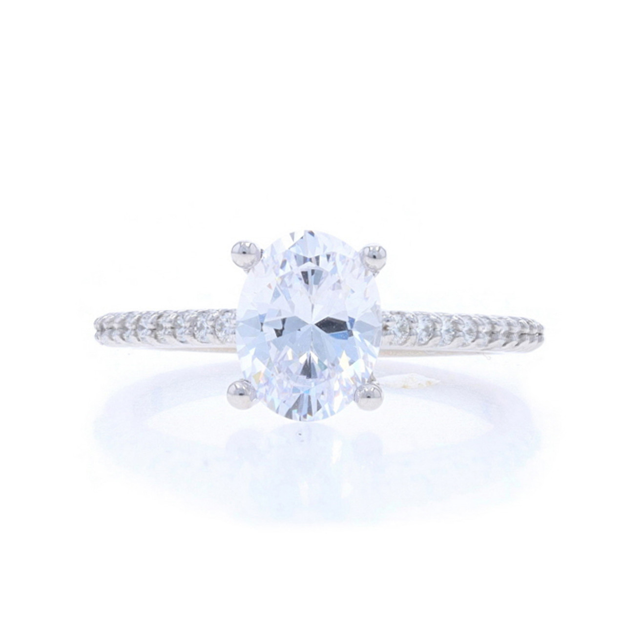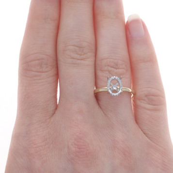 White Gold Semi-Mount Engagement Ring - 14k Oval Dias .20ctw CZ fits ~8x6mm