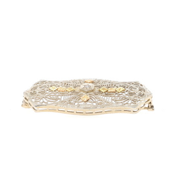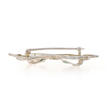 White Gold Simulated Emerald Art Deco Bar Brooch -10k Marq Vintage Filigree Pin