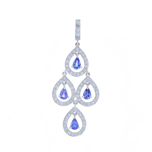 White Gold Tanzanite Diamond Chandelier Dangle Pendant - 14k Pear 2.47ctw