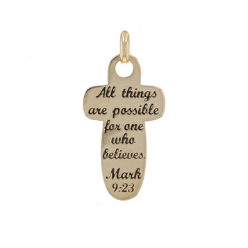 Yellow Gold All Things Are Possible Cross Pendant - 14k Mark 9:23 Faith Gift