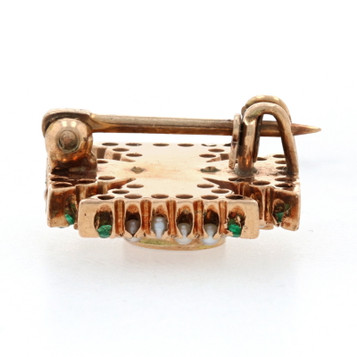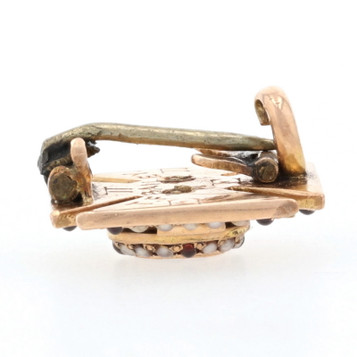 Yellow Gold Alpha Tau Omega Antique Badge 14k Ruby Pearl 1900s-10s FraternityPin