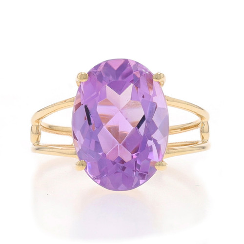 Yellow Gold Amethyst Cocktail Solitaire Ring - 10k Oval 4.70ct