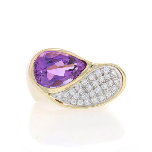 Yellow Gold Amethyst Diamond Leaf Ring - 14k Pear 5.99ctw Brushed Cluster