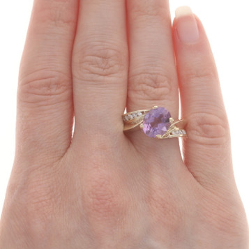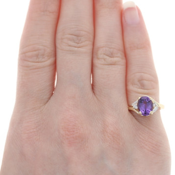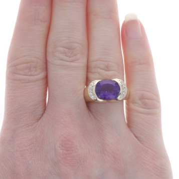 Yellow Gold Amethyst & Diamond Vintage Halo Ring - 14k Mixed Oval 7.95ctw