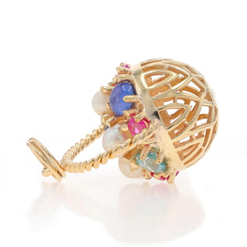 Yellow Gold Amethyst Sapphire Ruby Peacock Pendant - 14k 3.70ctw Bird Reversible