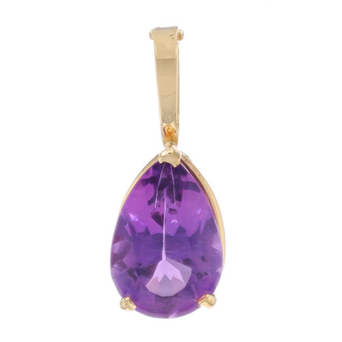 Yellow Gold Amethyst Solitaire Enhancer Pendant - 14k Pear 4.70ct