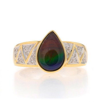Yellow Gold Ammolite Diamond Ring - 18k Pear .20ctw Triplet