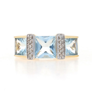 Yellow Gold Aquamarine Diamond Three-Stone Ring - 14k Princess 2.65ctw