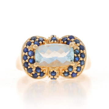 Yellow Gold Aquamarine Sapphire Halo Ring -14k Rect Cushion Checkerboard 2.05ctw