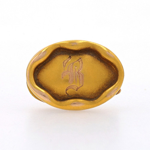 Yellow Gold Art Deco Initial B Oval Tie Clip - 14k Monogram Letter Vintage