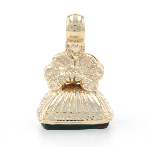 Yellow Gold Bloodstone 1978 Ribbed Fan Fob Pendant - 9k London