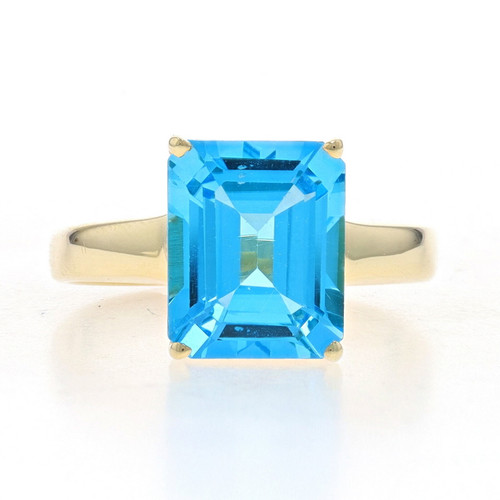 Yellow Gold Blue Topaz Cocktail Solitaire Ring - 14k Emerald Cut 3.55ct