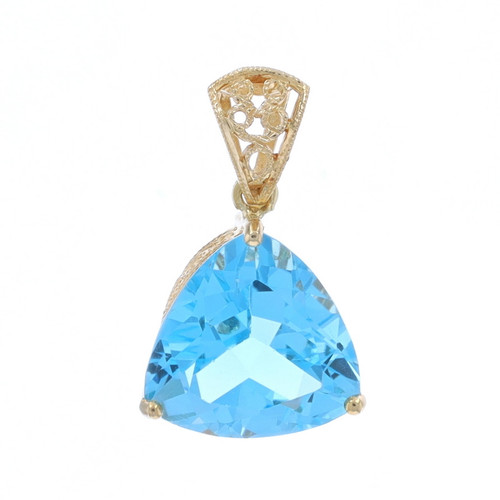 Yellow Gold Blue Topaz Solitaire Pendant - 14k Trillion 4.75ct Milgrain
