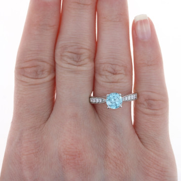Yellow Gold Blue Zircon & Diamond Engagement Ring 18k Emerald Cut 3.08ctw 6 1/2