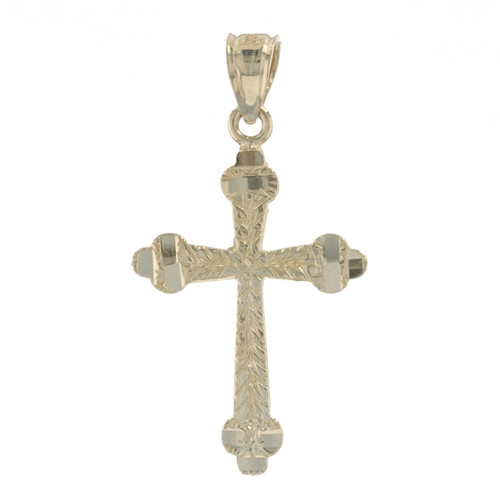 Yellow Gold Budded Cross Pendant - 10k Faith Etched
