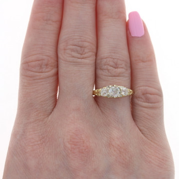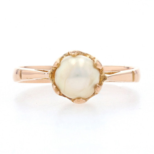 Yellow Gold Button Pearl Edwardian Solitaire Ring - 18k Antique Engagement GIA