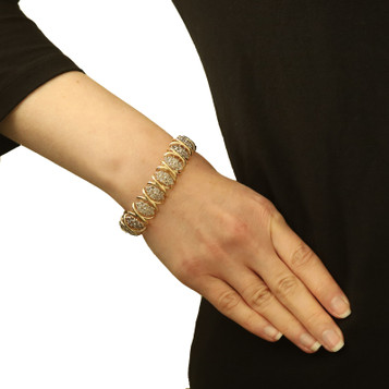 Yellow Gold Chalcedony Onyx Garnet Link Bracelet 7 1/4" -14k Round Cabochon XOXO