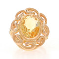 Yellow Gold Citrine Retro Cocktail Solitaire Ring - 14k Oval 5.20ct Floral Swirl