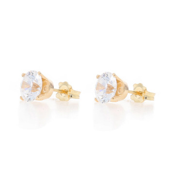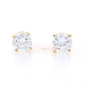 Yellow Gold Cubic Zirconia Stud Earrings - 14k Round Brilliant 1.00ctw Pierced