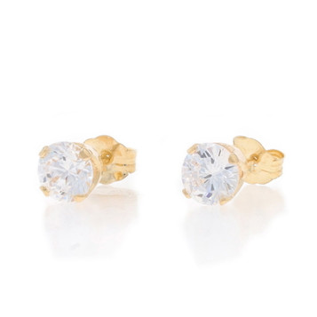 Yellow Gold Cubic Zirconia Stud Earrings - 14k Round Brilliant 2.06ctw Pierced