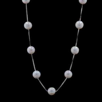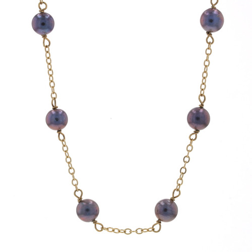 Yellow Gold Cultured Freshwater Pearl Chain Station Necklace 17" - 14k Dyed