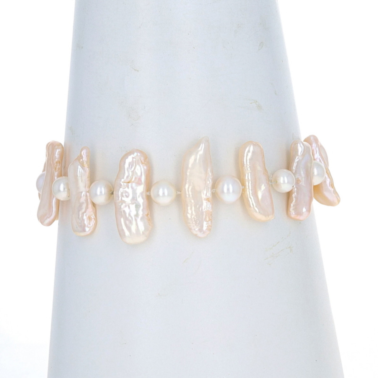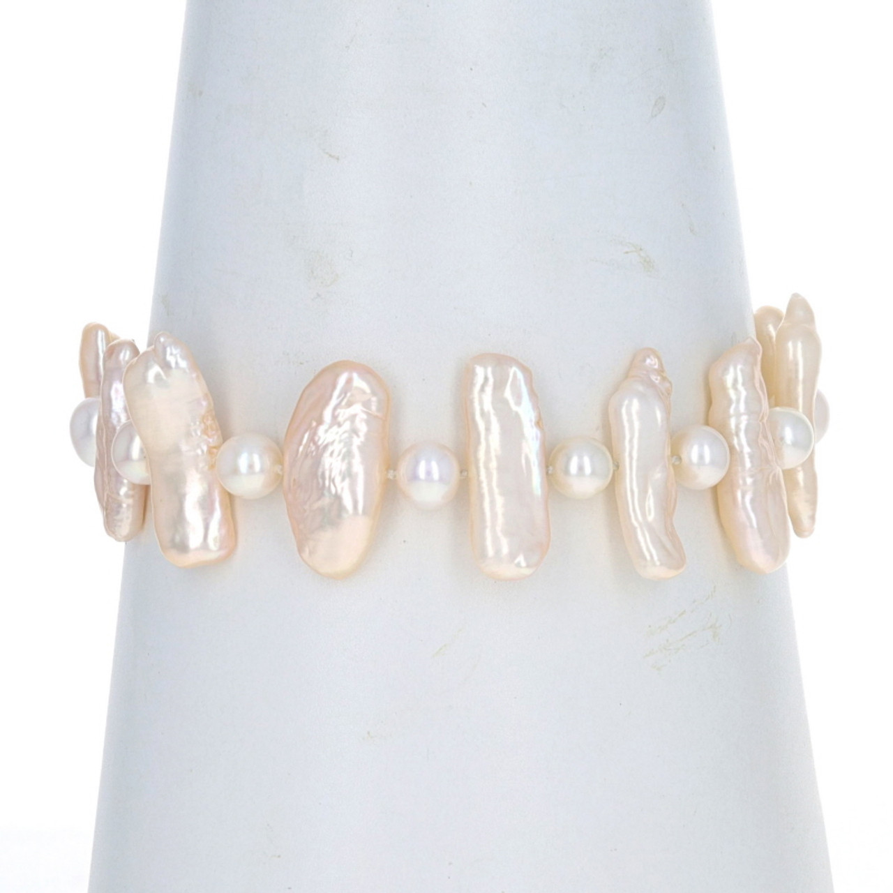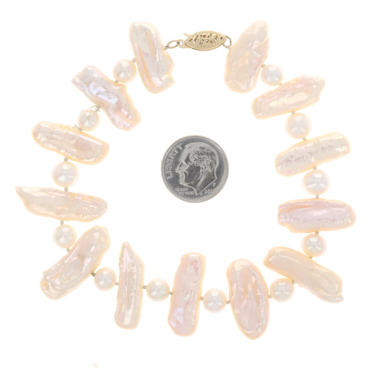 Yellow Gold Cultured & Freshwater Pearl Knotted Strand Bracelet 8 1/4" - 14k
