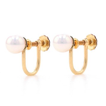 Yellow Gold Cultured Pearl Stud Earrings - 10k Non-Pierced Screw-Ons
