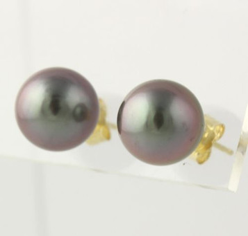 Yellow Gold Cultured Pearl Stud Earrings - 18k Tahitian