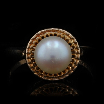 Yellow Gold Cultured Pearl Vintage Solitaire Ring - 14k Flower