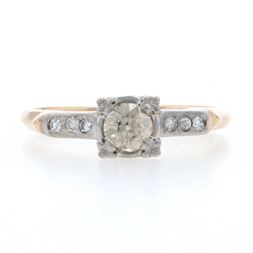 Yellow Gold Diamond Art Deco Engagement Ring 14k Euro .42ctw Fancy Brown Vintage