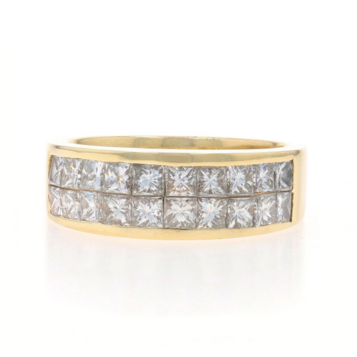 Yellow Gold Diamond Cluster Band - 18k Princess 2.00ctw Invisible Set Ring Sz 7