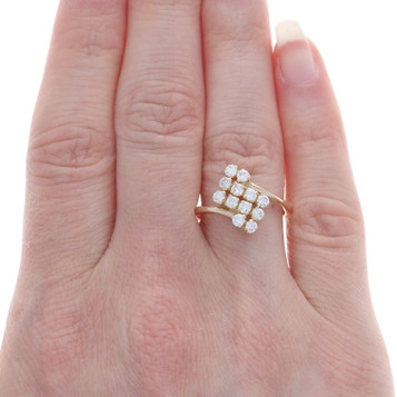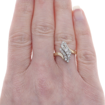 Yellow Gold Diamond Cluster Bypass Ring - 10k Round Brilliant .24ctw